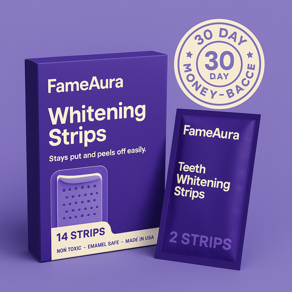 Forget harsh whitening gels and sensitive teeth irritation. The Fame Aura™ Teeth Whitening Strips work at home to deliver visible results — brighter teeth, lifted stains, and a naturally confident smile.